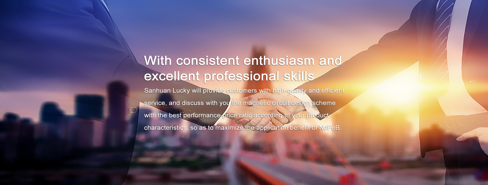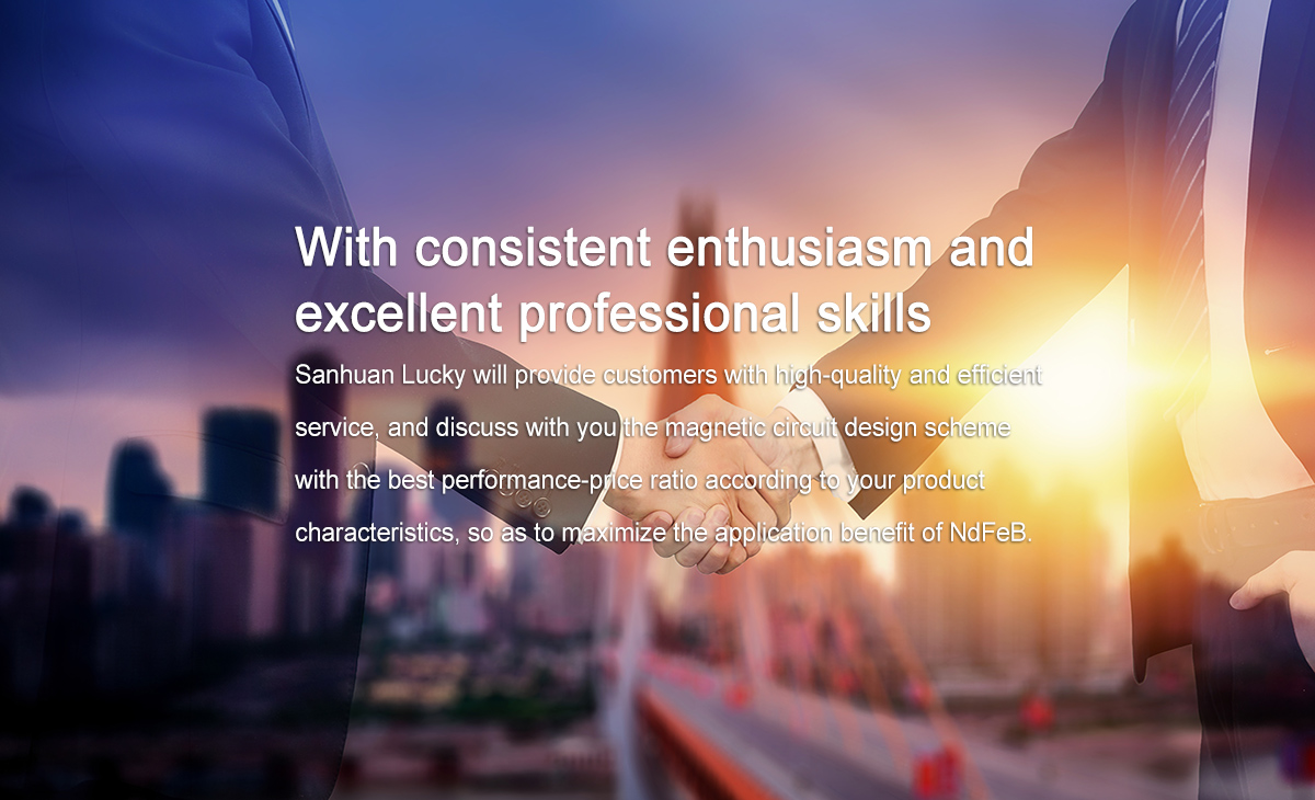Tianjin Sanhuan Lucky New Materials Inc. was established in 1990. Zhong Ke San Huan High-Tech. Co., Ltd (stock code: 000970), the controlling shareholder of Tianjin Sanhuan Lucky New Materials Inc., is a representative enterprise of China's rare earth permanent magnet industry and one of the largest manufacturers of NdFeB permanent magnets in the world. Since its establishment, the enterprise has been committed to research and development, production and selling high-end sintered NdFeB. The annual production capacity is more than 12000 tons and is an important production base of the Zhong Ke San Huan.